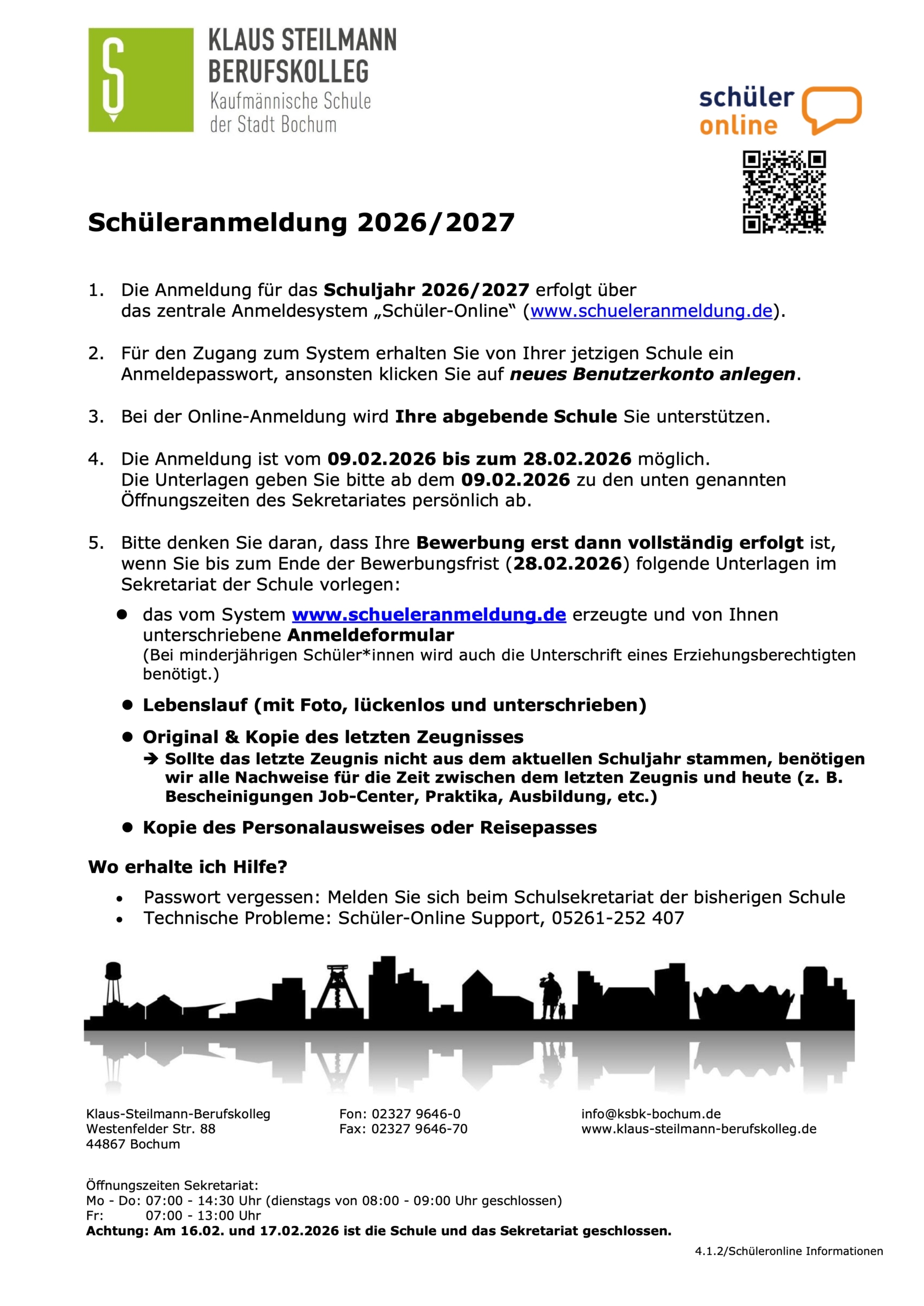 Anmeldung für das Schuljahr 2026/2027 am Klaus-Steilmann-Berufskolleg